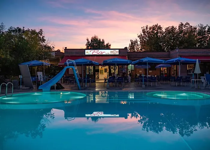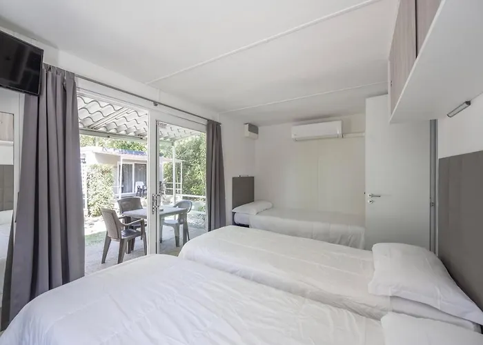 Sono rimasto davvero soddisfatto del mio soggiorno in questo luogo! Ho alloggiato in una casa mobile che era pulita, comoda e molto funzionale. Il punto di forza era sicuramente la presenza di due bagni, davvero un'ottima comodità! Inoltre, la posizione strategica di questo posto mi ha permesso di raggiungere facilmente il centro, e se si ha una macchina, è ancora più comodo perché c'è il parcheggio incluso. La struttura offre una bellissima piscina, un bar, un market e un ristorante all'interno. Davvero una piacevole sorpresa!